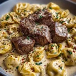 Yet, what truly distinguishes this recipe is its versatility. You can easily adjust the heat levels with red pepper flakes for those who crave a bit more fire, or enrich the dish with vibrant greens. This recipe stands out for its adaptability and its elegant presentation, making it a show-stopper at any table. Whether shared with loved ones or savored solo, Cracked Garlic Steak Tortellini in Creamhouse Sauce Bliss inspires joy, comfort, and those “wow” moments you’ll treasure and share.